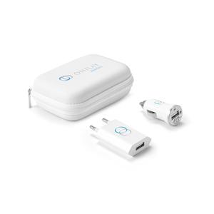 Descrição: Kit de adaptadores USB em ABS. Incluso adaptador de corrente DC 110V/220V e adaptador para carro DV 12-24V. Fornecido com bolsa EVA. Bolsa: 112 x 80 x 45 mm