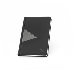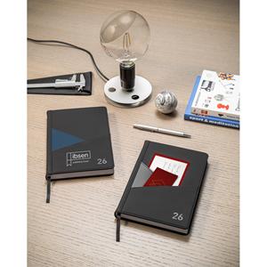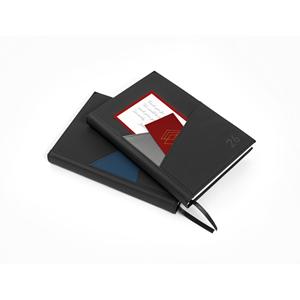 Descrição: Agenda A5 em PU. Possui 2 bolsos exteriores na capa para guardar pequenos objetos e um marcador em fita. Está organizada num plano diário (70 g/m²). 148 x 210 mm