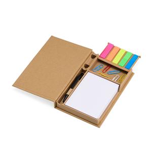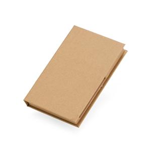Descrição: Tudo em seu lugar, prontinho para as anotações! Nosso Bloco de Anotações Ecológico é perfeito para manter a organização enquanto se registra ideias. Feito de material kraft, ele vem com 100 folhas brancas para anotações, 5 marcadores autoadesivos coloridos para destacar o que é importante, 7 clips guardados em uma gavetinha prática e uma mini caneta de papelão com carga esferográfica azul. E ainda conta com espaço para armazenar a caneta e dois suportes Porta-Canetas, garantindo praticidade no dia a dia. Este bloco é tudo o que o seu cliente precisa para dias repletos de anotações. Largura 10,6 cm Medidas aproximadas para gravação(CxL): 14 cm x 8 cm Peso aproximado(g): 191 Tamanho total aproximado (CxL): Caneta: 8,5 cm x 1,2 cm Espessura 2,1 cm Altura 16,3 cm