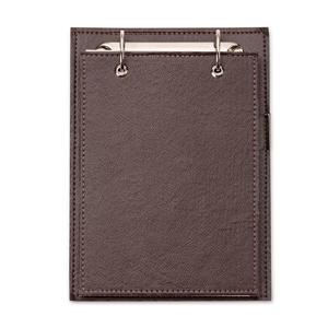Descrição: Bloco de anotações de mesa com trilho de ferro, capa em couro sintético. Possui suporte na lateral interna para colocar caneta (não acompanha) e aproximadamente 96 folhas com área destacável. Largura 17 cm Medidas aproximadas para gravação(CxL): 17,5 cm x 14 cm Peso aproximado(g): 396 Comprimento 23,2 cm Espessura 3,8 cm