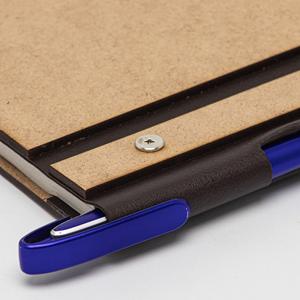 Descrição: Bloco de anotações Ecológico em MDF com Porta-Canetas e detalhes em couro sintético. Contém aproximadamente 98 folhas recicláveis e sem pauta. Largura 14,5 cm Medidas aproximadas para gravação(CxL): 15 cm x 11 cm Peso aproximado(g): 360 Espessura 1,6 cm Altura 21,2 cm