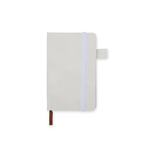 Descrição: Caderneta em PU com marcador de página em cetim e fita elástica para fechar. Contém aproximadamente 80 folhas amareladas sem pauta. Largura 9 cm Medidas aproximadas para gravação(CxL): 11,5 cm x 6 cm Peso aproximado(g): 104 Espessura 1,3 cm Altura 14,3 cm