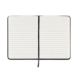 Descrição: Caderneta emborrachada com pauta, elástico para lacre e marcador de página em cetim. Largura 13,1 cm Medidas aproximadas para gravação(CxL): 17,4 cm x 12,3 cm Peso aproximado(g): 194 Espessura 1,2 cm Altura 18,1 cm