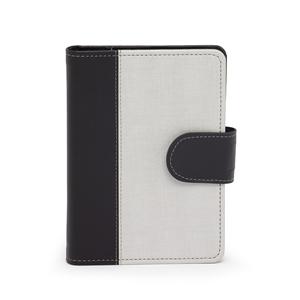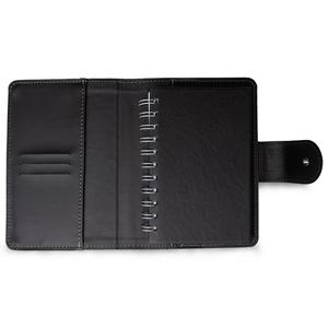 Descrição: Caderneta de couro sintético com fechamento de botão. Possui caderno capa dura em couro sintético com aproximadamente 100 folhas pautadas, divisórias para cartões e bolso lateral. Largura 14 cm Medidas aproximadas para gravação(CxL): 5 cm x 6,5 cm Peso aproximado(g): 282 Espessura 2,5 cm Altura 18 cm