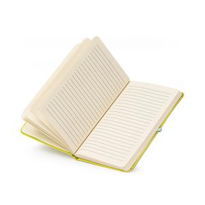 Descrição: Caderneta em couro sintético com Porta-Canetas, marcador de página em cetim e fita elástica para lacre. Contém aproximadamente 80 folhas pardas com pauta. Largura 14 cm Medidas aproximadas para gravação(CxL): 18 cm x 12 cm Peso aproximado(g): 256 Espessura 1,6 cm Altura 21 cm