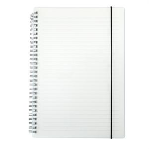 Descrição: Caderno B5 com capa plástica e elástico para lacre, contém aproximadamente 80 folhas marfim com pauta. Largura 19 cm Medidas aproximadas para gravação(CxL): 25 cm x 16 cm Peso aproximado(g): 337 Espessura 1,7 cm Altura 26 cm