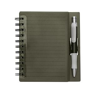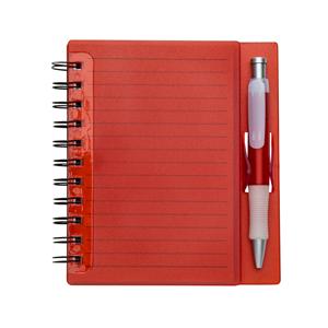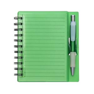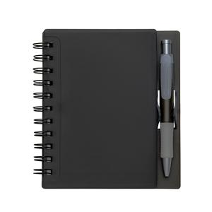 Descrição: Caderno plástico wire-o com caneta e suporte para encaixe. Caneta de Plástico com detalhe emborrachado, carga esferográfica na cor azul e acionamento por clique. Largura 14,8 cm Medidas aproximadas para gravação(CxL): 1,2 cm x 3,8 cm Peso aproximado(g): 146 Altura 16,1 cm