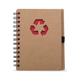 Descrição: Caderno ecológico com símbolo reciclado na capa, acompanha folhas coloridas estilo folhas de guarda nas cores: vermelho, amarelo, laranja, azul, verde e preto, possibilitando selecionar a cor desejada como fundo do logo reciclado. Possui aproximadamente 70 folhas brancas pautadas com logo reciclado na lateral inferior das folhas, possui também elástico suporte para caneta(não acompanha caneta). Largura 15 cm Medidas aproximadas para gravação(CxL): 9,5 cm x 11,5 cm Peso aproximado(g): 163 Altura 18 cm