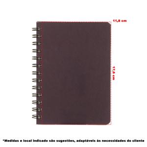 Descrição: Caderno capa dura em kraft com wire-o. Contém aproximadamente 80 folhas brancas pautadas. Largura 13,5 cm Medidas aproximadas para gravação(CxL): 17,6 cm x 11,8 cm Peso aproximado(g): 237 Espessura 2,1 cm Altura 17,7 cm