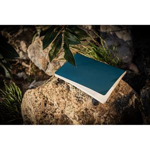 Descrição: Caderno A5 de capa flexível em papel pedra (620g/m²), resistente à água. Contém 64 folhas brancas lisas (120g/m²) também em papel pedra. 140 x 210 mm