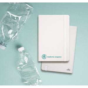 Descrição: Caderno A5 em PET reciclado com tratamento antibacteriano, segundo a certificação ISO 20743. Contém 80 folhas pautadas cor marfim, em papel proveniente de gestão florestal sustentável, elástico e fita separadora.