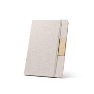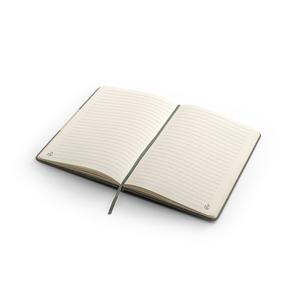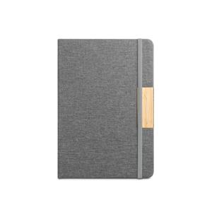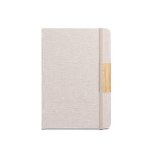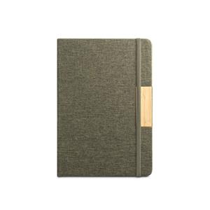 Descrição: Caderno A5 de capa dura em tecido PET 100% reciclado (rPET) e detalhe em bambu. Contém 160 páginas pautadas em papel cor marfim 100% reciclado, fita separadora e elástico para fecho do caderno. A cor e o resultado da impressão nos materiais naturais pode variar entre produtos. A cor e o resultado da impressão nos materiais naturais pode variar entre produtos. 146 x 210 mm