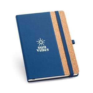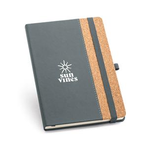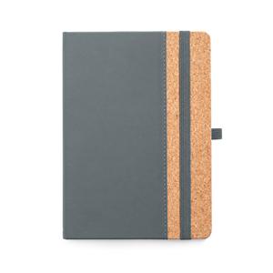 Descrição: Caderno A5 com capa dura em cortiça e PU e 192 páginas pautadas em cor marfim. Contém elástico, fita separadora e suporte para esferográfica (não inclusa). Fornecido em bolsa de TNT. 140 x 210 mm