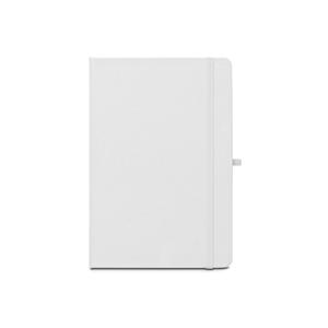 Descrição: Caderno A5 de capa dura, ideal para personalização em sublimação. O caderno em poliéster 100% reciclado (rPET) 300D tem 160 páginas pautadas em papel 100% reciclado cor de marfim, uma fita separadora, um suporte para esferográfica (não inclusa) e um elástico para fecho do bloco. 143 x 211 mm