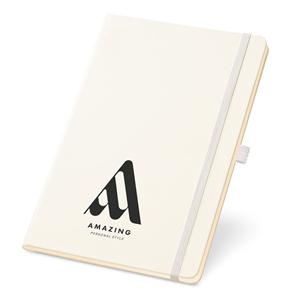Descrição: Caderno A5 de capa dura com 160 páginas pautadas em cor marfim, suporte para caneta esferográfica (não inclusa) e bolso interior. 137 x 210 mm