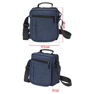 Descrição: Bolsa de ombro em nylon com quatro compartimentos. Largura 14,5 cm Medidas aproximadas para gravação(CxL): 10 cm x 8 cm Peso aproximado(g): 228 Profundidade 7 cm Altura 18 cm