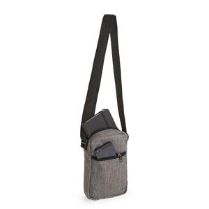 Descrição: Bolsa de ombro resistente à água, confeccionada em poliéster mesclado com PVC, com fechamento em zíper e alça ajustável. Possui divisória em tela de nylon no compartimento interno e um bolso frontal para a organização de objetos. Largura 13 cm Medidas aproximadas para gravação(CxL): 12 cm x 10 cm Peso aproximado(g): 105 Profundidade 5,5 cm Altura 19 cm