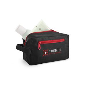 Descrição: Bolsa de cosméticos em 600D com pega e bolso frontal. 200 x 115 x 85 mm