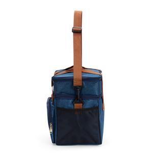 Descrição: Bolsa térmica dupla em poliéster 300D resistente à água e capacidade total de 15 litros. Possui dois compartimentos térmicos: um inferior, com revestimento em PEVA soldado (não vaza) que comporta até 11 litros e outro, em alumínio, com espaço para até 3 litros. Conta ainda com bolso frontal de 1 litro, bolsos laterais em tela, alças de mão com suporte de juntura e alça transversal regulável e removível. Largura 25 cm Medidas aproximadas para gravação(CxL): 15 cm x 20 cm Peso aproximado(g): 291 Profundidade 19 cm Altura 26 cm