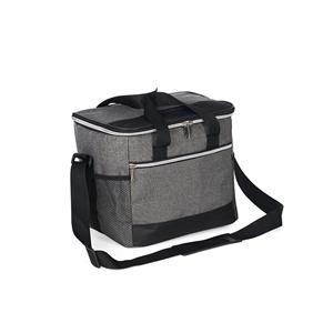 Descrição: Bolsa térmica confeccionada em poliéster resistente à água e capacidade de até 15 litros. Possui revestimento interno em PEVA antivazamento, que ajuda a conservar a temperatura de alimentos e bebidas por mais tempo. Conta com bolso frontal com zíper, dois bolsos laterais em tela de nylon, alças de mão e alça transversal fixa, regulável e com apoio para ombro. Largura 26 cm Medidas aproximadas para gravação(CxL): 10 cm x 22 cm Peso aproximado(g): 350 Profundidade 20 cm Altura 24 cm