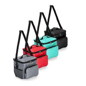 Descrição: Bolsa térmica em Oxford resistente à água e com capacidade de até 11 litros. Seu revestimento interno em alumínio permite a conservação de temperatura de alimentos e bebidas por mais tempo. Possui também um bolso frontal e mais um par de bolsos laterais em tela de nylon, além de uma alça fixa na tampa e outra transversal. Largura 25 cm Medidas aproximadas para gravação(CxL): 12 cm x 20 cm Peso aproximado(g): 231 Profundidade 15,5 cm Altura 22 cm