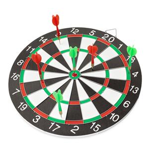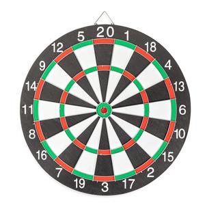 Descrição: Conjunto para jogo de dardos composto por um alvo dupla face em madeira com alça e outros detalhes em metal e seis dardos com pontas metálicas e acabamento em plástico. Largura 36 cm Peso aproximado(g): 902 Comprimento 36 cm Espessura 1,1 cm