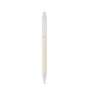 Descrição: Esferográfica produzida através de pacotes de leite reciclados, contribuindo para o reaproveitamento do cartão e alumínio. Corpo em cartão e componentes coloridos em ABS 100% reciclado. Escrita em azul até 1,5 km. ø10 x 139 mm