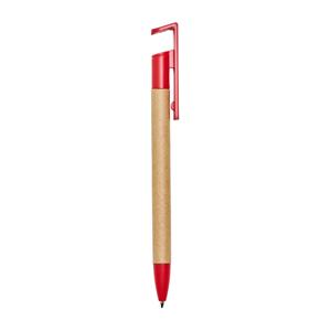 Descrição: Caneta de papelão com suporte para celular, carga esferográfica azul 0,8 mm e acionamento por clique. Largura 1,5 cm Medidas aproximadas para gravação(CxL): 8,5 cm x 0,5 cm Peso aproximado(g): 5 Comprimento 14,7 cm