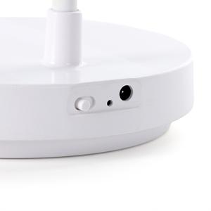Descrição: Luminária articulável em led recarregável e funcionamento touch, material plástico. Contém três estágios de iluminação com regulagem de intensidade touch: luz fria (branca), luz quente (amarela) e luz mista (branca e amarela). Base com botão para ligar e desligar. Acompanha uma bateria de lítio e cabo USB para carregamento. Largura Base 12,7 cm Medidas aproximadas para gravação(CxL): Base 5 cm x 4,6 cm - Topo 4 cm x 3 cm Peso aproximado(g): 278 Comprimento Base 12,8 cm Espessura Base 2,6 cm Altura Aberto 40 cm