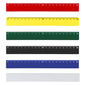 Descrição: Régua plástica colorida de 20 cm com verso liso. Medidas aproximadas para gravação(CxL): 1,6 cm x 19,6 cm Peso aproximado(g): 7 Tamanho total aproximado (CxL): 2,4 cm x 21 cm