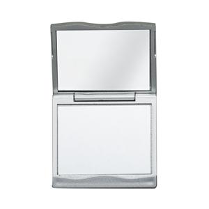 Descrição: Espelho duplo compacto com moldura em plástico, detalhe ondulado na área da abertura e tampa de formato curvo. Possui dois espelhos: o superior sem aumento e o inferior com aumento. Largura 6,7 cm Medidas aproximadas para gravação(CxL): 5 cm x 6,5 cm Peso aproximado(g): 46 Comprimento 6,8 cm Espessura 1,2 cm