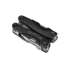 Descrição: Mini alicate multifunções dobrável em aço inox e alumínio com 9 funções. Fornecido em bolsa de 600D.