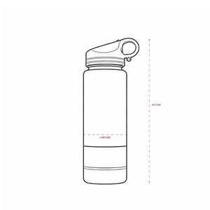 Descrição: Squeeze plástico com acabamento fosco, marcação de volume e capacidade máxima de 900ml. Possui tampa rosqueável com alça fixa, bico flip e canudo interno removível. Acompanha tira emborrachada removível. Largura 9,3 cm Medidas aproximadas para gravação(CxL): 13 cm x 6 cm (garrafa) - 3 cm x 9 cm (tira emborrachada) Peso aproximado(g): 142 Circunferência 23,9 cm Altura 26,8 cm