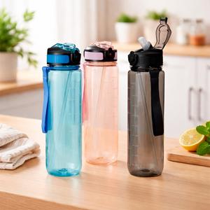 Descrição: Squeeze plástico livre de BPA com capacidade máxima de 1,05L e marcação de volume de até 1L. Possui tampa rosqueável com bico flip, tampa protetora, botão de acionamento com trava de segurança. Acompanha canudo interno em plástico e alça para transporte em nylon. Largura 7,8 cm Medidas aproximadas para gravação(CxL): 18 cm x 6 cm Peso aproximado(g): 170 Circunferência 5,5 cm Altura 28,5 cm