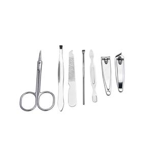 Descrição: Kit manicure 7 peças em estojo de couro sintético. Contém: tesoura, 2 cortadores de unha, pinça, lixa, empurrador de cutícula e espátula para ouvido. Largura 6,8 cm Medidas aproximadas para gravação(CxL): 4 cm x 5 cm Peso aproximado(g): 45 Comprimento 9,7 cm Espessura 1,4 cm
