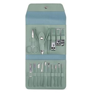 Descrição: Kit manicure 16 peças em estojo de couro sintético estilo envelope, contém: tesoura, alicate de cutícula, pinça, 3 cortadores de unha, lixa, 2 bisturis, raspador, empurrador de cutícula, removedor de cutícula, espátula dupla para limpeza das unhas, limpador de ouvido, palito de unha e espátula para ouvido. Largura 13,8 cm Medidas aproximadas para gravação(CxL): 4 cm x 10 cm Peso aproximado(g): 185 Comprimento 10,7 cm Espessura 1,6 cm