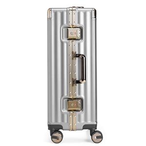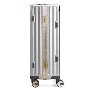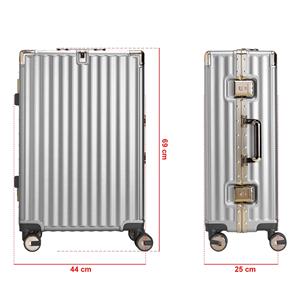 Descrição: Mala de viagem 64 litros feita em plástico com acabamento em alumínio, contém cadeado numérico TSA. Compartimentos internos com bolso telado, bolso plástico para itens molhados e cinta compressora para roupas. A mala possui duas alças de mãos, puxador retrátil com regulagem de tamanho, suporte Porta-Bolsa, quatro rodinhas 360º e apoios laterais. Largura 44 cm Medidas aproximadas para gravação(CxL): 49 cm x 34 cm Peso aproximado(g): 3904 Profundidade 24,1 cm Altura 66,8 cm