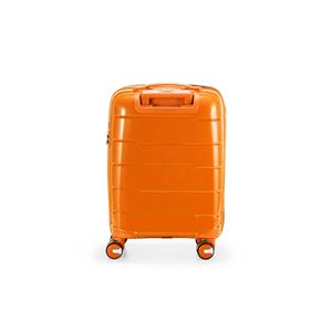 Descrição: Mala de bordo 45 litros em plástico PP (casca dura), contém cadeado numérico TSA. Compartimentos com bolso telado e cinta compressora para roupas. A mala possui duas alças de mão, puxador retrátil com regulagem de tamanho, quatro rodinhas 360º e apoios laterais. Acompanha placa para personalização. Largura 35 cm Medidas aproximadas para gravação(CxL): 1 cm x 3,8 cm Peso aproximado(g): 2612 Profundidade 23 cm Altura 50 cm