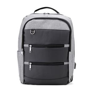 Descrição: Mochila de nylon 23 Litros com detalhes em couro sintético e quatro compartimentos, sendo o principal com bolso para notebook 15,6. Com divisórias internas para acessórios, a mochila possui bolso lateral, suporte externo USB e alça para engate em malas de viagem. Largura 33 cm Medidas aproximadas para gravação(CxL): 7,5 cm x 25 cm Peso aproximado(g): 646 Profundidade 12 cm Altura 39 cm