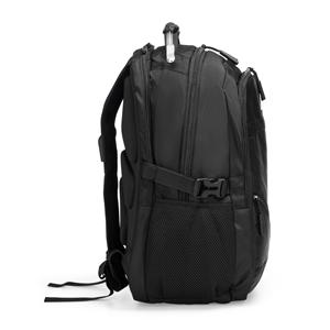 Descrição: Mochila confeccionada em PVC Jacquard com mescla em seda, resistente à água, fechamento em zíper no compartimento principal e capacidade de até 23 litros. Possui uma placa metálica para personalização, três compartimentos frontais, dois bolsos laterais em tela de nylon e bolso traseiro para notebook de até 15,3 polegadas. Conta ainda com engates laterais ajustáveis, alça superior em plástico e silicone, alças acolchoadas, adaptadores USB e P2 e painel traseiro estofado. Acompanha capa protetora em tecido sintético. Largura 28 cm Medidas aproximadas para gravação(CxL): 2,5 cm x 2,5 cm Peso aproximado(g): 661 Profundidade 21 cm Altura 40 cm