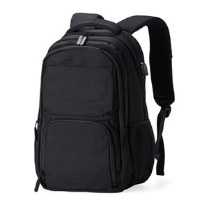 Descrição: Mochila de poliéster 28 litros com seis compartimentos, sendo o principal com bolso para notebook 15,6 e tablet 12,4. Com divisórias internas para acessórios e porta chave, a mochila possui adaptador USB externo, bolsos laterais telados, duas alças de mãos, área costada e alças para as costas com revestimento espumado. Largura 31 cm Medidas aproximadas para gravação(CxL): 10 cm x 20 cm Peso aproximado(g): 786 Profundidade 15,5 cm Altura 43 cm