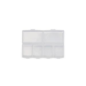 Descrição: Porta-Comprimidoss em plástico com seis compartimentos, dois maiores e outros quatro menores, oferecendo mais possibilidades de organização. Largura 6,4 cm Medidas aproximadas para gravação(CxL): 2,5 cm x 4 cm Peso aproximado(g): 23 Comprimento 9,5 cm Espessura 1,9 cm