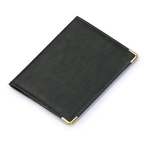 Descrição: Porta-Documentos em couro sintético com cantoneira dourada, possui 4 divisórias plásticas grande e duas divisórias pequenas. Medidas aproximadas para gravação(CxL): 11,5 cm x 7,5 cm Peso aproximado(g): 38 Tamanho total aproximado (CxL): 12,2 cm x 17,7 cm