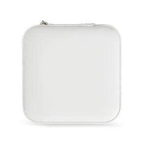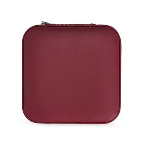 Descrição: Porta-joias feito em couro sintético com revestimento interno em tecido aveludado. Possui bolso elástico e três ganchos pequenos na parte interna da tampa, além de divisória multiuso e repartição almofadada com ranhuras para anéis, ambos localizadas no compartimento principal. Largura 9,8 cm Medidas aproximadas para gravação(CxL): 9 cm x 9 cm Peso aproximado(g): 106 Profundidade 9,9 cm Altura 4,9 cm