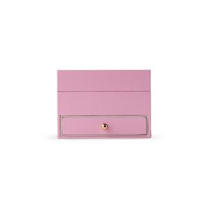 Descrição: Porta-joias em couro sintético e revestimento interno em veludo. Possui três ganchos pequenos e um bolso elástico na parte interna da tampa, além de divisória multiuso removível e repartição almofadada com ranhuras para anéis, ambos localizadas no compartimento principal. Conta ainda com gaveta removível com puxador de alumínio. Largura 11,1 cm Medidas aproximadas para gravação(CxL): 10 cm x 10 cm Peso aproximado(g): 295 Comprimento 11 cm Altura 8,4 cm