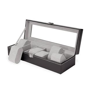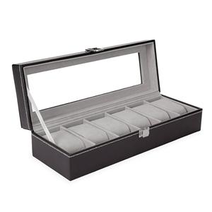 Descrição: Porta-relógios com acabamento em couro sintético à base de PVC. Possui revestimento interno em veludo e seis divisórias com almofadas removíveis, além de visor de vidro na tampa e trava de segurança para o fechamento do estojo. Medidas aproximadas para gravação(CxL): 2 cm x 30 cm Peso aproximado(g): 628 Profundidade 10,9 cm Comprimento 30,5 cm Altura 7,7 cm