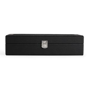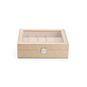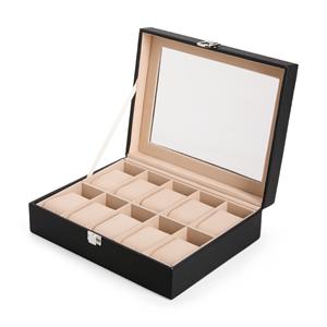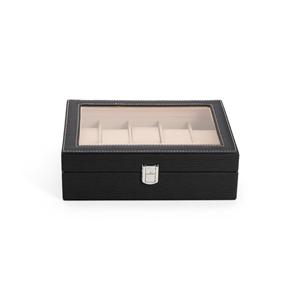 Descrição: Porta-relógios com acabamento texturizado em couro sintético à base de PVC e revestimento interno em tecido aveludado. Possui dez divisórias com almofadas removíveis, visor de vidro e trava de segurança na tampa. Largura 20,5 cm Medidas aproximadas para gravação(CxL): 2 cm x 24 cm Peso aproximado(g): 851 Comprimento 25,7 cm Altura 8 cm