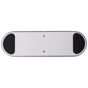 Descrição: Caixa de som multimídia com estrutura feita em plástico, revestimento metálico e detalhes em material antideslizante na base. Possui conexão Bluetooth e rádio FM, além de painel de botões para controlar a reprodução de músicas a partir de aparelhos pareados, pen drives ou cartões microSD, por meio das entradas USB-A e TF. Conta ainda com entrada auxiliar P2 e acompanha cabo micro-USB para carregamento do aparelho. Largura 20 cm Medidas aproximadas para gravação(CxL): 5 cm x 6 cm Peso aproximado(g): 570 Espessura 6 cm Altura 7,5 cm