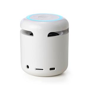 Descrição: Caixa de som multimidia com estrutura em plástico, display frontal em LED e base emborrachada antiderrapante. Possui conexão Bluetooth 5.0 e entradas para cabo auxiliar P2 e cartão TF (microSD), que permitem a reprodução de arquivos MP3, além de função para sintonia de rádio FM e programação de até três alarmes diferentes. Acompanha cabo USB-C. Largura 7,5 cm Medidas aproximadas para gravação(CxL): 1,5 cm x 5 cm Peso aproximado(g): 248 Circunferência 24 cm Altura 8,8 cm