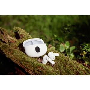 Descrição: Fones de ouvido wireless em ABS 100% reciclado, com transmissão BT v5.4. A caixa de carregamento tem uma tela digital que mostra o nível de carga e tem uma capacidade de 200 mAh, oferecendo uma autonomia, aproximada, de 4h. Os fones de ouvido permitem atender chamadas, controlar o volume e a playlist do dispositivo móvel. Incluso um cabo de carregamento USB-C. Fornecido em caixa presente de papel kraft reciclado. 61 x 49 x 29 mm | Caixa: 62 x 32 x 74 mm